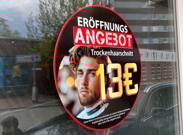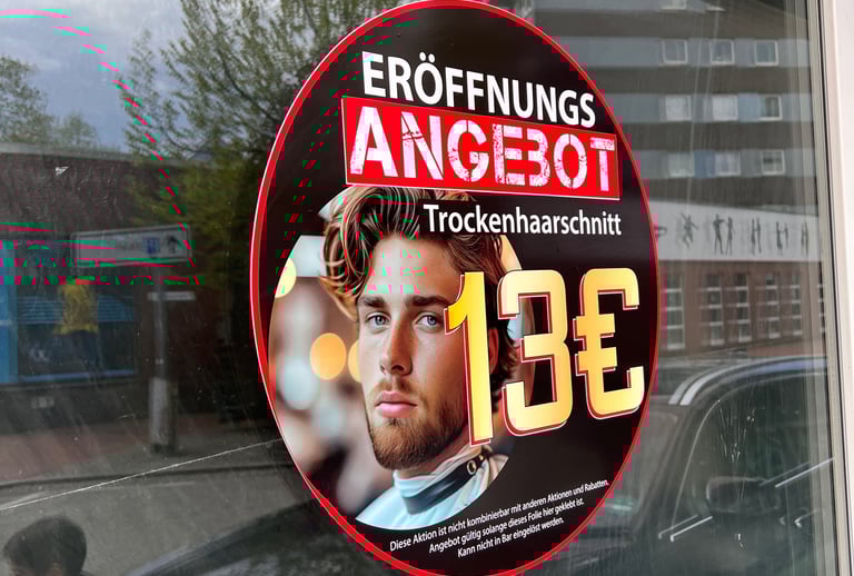 Auch individuelle Klebefolien, Schaufensterbeschriftung oder Fahrzeugfolien gehören zu unserem Portfolio – für starke Markenauftritte im Innen- und Außenbereich.